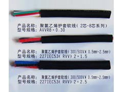 AVVR电线规格:线芯常用的规格有0.12mm2、0.2mm2、0.3mm2、0.4mm2,芯数有2芯、3芯、4芯、5芯、6芯、7芯、8芯、9芯、10芯等。如AVVR3*0.2电线则表示该电线由三股线芯,每股规格为0.2mm2组成。